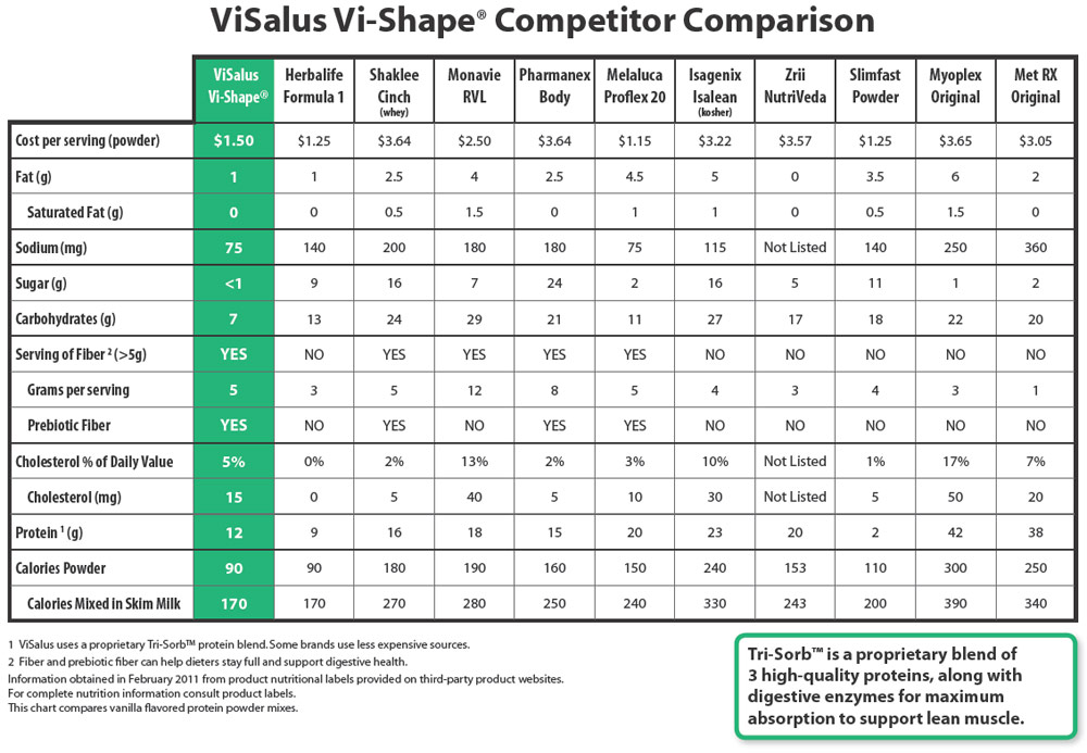 ViSalus Vi Shape Nutritional Shake Mix Sweet Cream Flavor | 22oz (1 Bag ... That's why it's The Shake Mix That Tastes Like A Cake Mix. It has our unique Tri-Sorb protein blend of highly absorbable proteins, fi ber, calcium, vitamins, minerals, digestive enzymes and more. Vi-Shape Nutritional Shake Mix is a perfectly balanced meal replacement!