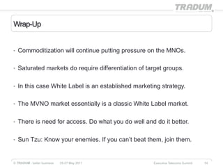 White label, sub brands and MVNO- what is the right model? - Telecoms.com White label MVNOs are a very interesting and exciting way to compete in the current tough trading circumstances. It's these pressures brands face to improve revenue and keep customers loyal that will drive the MVNO market over the coming year. In particular, we'll see brands realise that they can achieve their goals via a white label partnership.