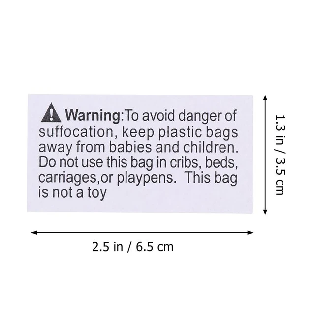 Warning Stickers Transparent Safety Suffocation Stickers for - Etsy Purchased item: Warning Stickers, Transparent Safety Suffocation Stickers for Plastic Bags, Warning Labels. Simone Mar 3, 2022. These labels were just what I wanted to put in my hand knitted items to meet health and safety regulations for donating. Pleased with them and they arrived quickly. Amazon.com: suffocation warning labels Suffocation Warning Stickers for Shipping and Packing - 3" X 1", Provided 500 Labels Per Roll, FBA Approved and BPA Free by Kenco (6 Pack) 553 $24 95 Small Business Above $25 Suffocation Warning Stickers for Shipping and Packing - 3" X 1", Provided 500 Labels Per Roll, FBA Approved and BPA Free by Kenco (12 Pack) 553 $34 99