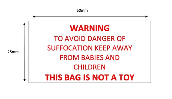Suffocation Warning Labels - Etsy Warning Stickers, Transparent Safety Suffocation Stickers for Plastic Bags, Warning Labels LabelsFastLtd (158) $14.91 FREE shipping Rectangular Suffocation Warning Labels - Choose from 250 to 1000 Label Size is 2.4 x 1" A MUST HAVE Shipping Supply for Clear Shipping Bags BeautyBearsBoutique (394) $9.97