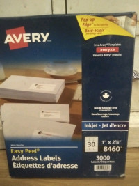 Avery Easy Peel Inkjet Address Labels, 1" x 2 5/8", White, 3000 Labels ... These Avery Easy Peel address labels are compatible with inkjet printers and prevent jamming and smudging for clear, crisp results. These address labels make your most important messages stand out, Individual labels measure 1"H x 2 5/8"W, White color for an attractive look, Features a permanent adhesive backing for a secure bond,