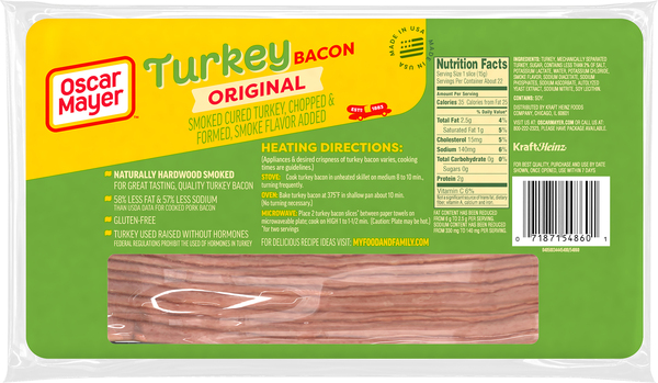 Oscar mayer turkey bacon calories. Calories in Oscar Mayer Turkey Bacon - SparkPeople Oscar Mayer Turkey Bacon (1 serving) Calories: 35, Fat: 3g, Carbs: 0g, Protein: 2g Show full nutrition information Oscar Mayer Turkey Bacon (14 G Rebanada) (1 serving) Calories: 35, Fat: 3g, Carbs: 0g, Protein: 2g Show full nutrition information Oscar Mayer Turkey Bacon (1 serving) Calories: 35, Fat: 3g, Carbs: 0g, Protein: 2g Calories in Oscar Mayer Turkey Bacon, Smoked Cured, 58% Less Fat & 57% ... Oscar Mayer Deli & Luncheon Meat Turkey Bacon, Smoked Cured, 58% Less Fat & 57% Less sodium How many calories in Oscar Mayer Turkey Bacon, Smoked Cured, 58% Less Fat & 57% Less sodium 35 Calories Quantity serving, slice (0.5 oz) Serving Add To Compare 0/8 Nutrition Facts Calorie Burn Time Natural Uncured Turkey Bacon 11oz | Oscar Mayer® Oscar Mayer Selects Uncured Turkey Bacon has no added nitrates or nitrites, 58% less fat that regular bacon, no artificial preservatives, and no added hormones, but all of the flavor you crave. NUTRITIONAL INFO YOU MAY ALSO LIKE... Natural Bacon Bits Natural Smoked Uncured Bacon SEE MORE Check out Pinterest for all our tasty tips! GET INSPIRED Calories in Oscar Mayer Turkey Bacon (15g) and Nutrition Facts - FatSecret There are 35 calories in 1 slice (15 g) of Oscar Mayer Turkey Bacon (15g). Calorie breakdown: 74% fat , 0% carbs, 26% protein. Related Turkey Bacon from Oscar Mayer: