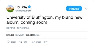 Bluffington. (Album) | Melanie Martinez Fanon Wiki - Fandom Bluffington is the seventh studio album by American singer and songwriter Melanie Martinez. It was released on January 28, 2017, by Atlantic Records through ... Bluffington | Melanie Martinez Fanon Wiki | Fandom Bluffington is the fifth album by Melanie Martinez Released on February 9th Melanie embarked on the Bluffington Tour beginning March 13th 2022 and ending ...