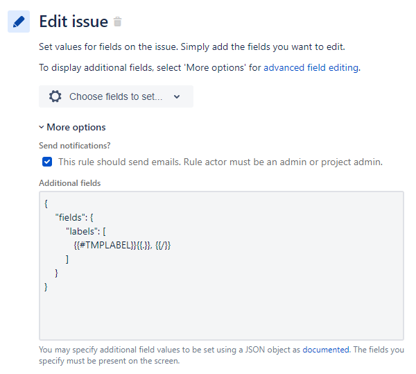 Automatically inherit labels from parent items : r/jira If you're on Cloud, you can do this with the included automation (limits might apply depending on the tier you're on) or if you're on Server/DC you will be able to do this with Automation for Jira add-on. You can read more about Jira automation here:Cloud: Add labels to Confluence pages created from Jira - Elements Apps Add labels to Confluence pages created from Jira Context As a Confluence administrator, you want to make sure that your spaces are properly organized and easy to navigate. When adding articles to a knowledge base, it is often useful to add labels to the Confluence pages in order to categorize them. Using Labels in Jira and Confluence | Medium Confluence automatically transforms and displays all labels in lowercase. I like that behavior. Unfortunately, Jira is not doing that. In Jira, one can set labels in uppercase and lowercase... Jira Cloud Automation - Update labels | Ravi Sagar Jira Cloud Automation - Create JSM ticket and set Request Type Jira Cloud Automation - Create Jira issue from GitLab push Jira Cloud Automation - Create a project using REST API Jira Cloud Automation - Create epics with stories Jira Cloud Automation - Create page in confluence Jira Cloud Automation - Create project on transition