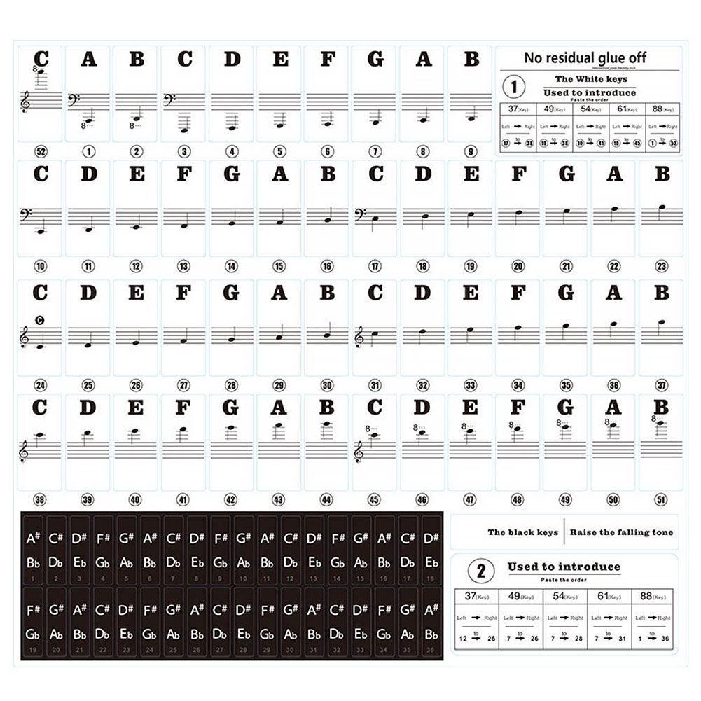 Piano Keyboard Stickers for 88/61/54/49/37 Key, Bold Large Letter Piano Stickers for Learning, Removable Piano Keyboard Letters, Notes Label for ...