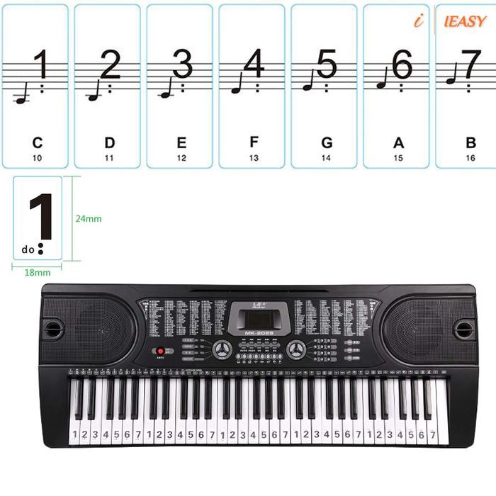 49/54/61/88 Transparan Warna-warni Piano Keyboard Stiker Keyboard Elektronik Kunci Piano Mencegah Catatan Stiker Simbol Putih kunci