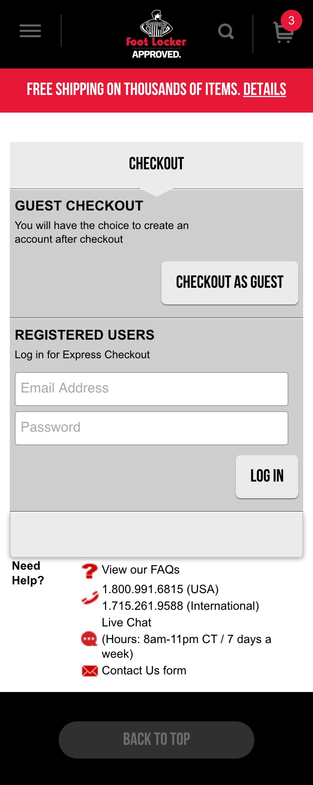 Return Policy: Satisfaction Guaranteed | Kids Foot Locker OUR GUARANTEE: IT WILL FIT OR WE'LL EXCHANGE IT FOR FREE! · Refunds will be processed in the form of payment used on the original order. · Refunds and gift cards ... PDF RETURN AND EXCHANGE INSTRUCTIONS - Foot Locker Address the package to: RETURN/EXCHANGE DEPARTMENT FOOT LOCKER 500 72ND AVE. N. WAUSAU, WI 54401 3. Attach the return label (located on the back of your invoice) to your package with clear tape or glue. 4. Please ship your package insured and prepaid via U.S. mail or UPS Ground. US and International Return and Exchange Instructions ... - Foot Locker 1.Return and Exchange Instructions Via Mail When returning the item you purchased, please include the return form which is located on the reverse side of the invoice received with your shipment. If you no longer have the invoice or one was not included in your package, click here. Returns & Exchanges - Foot Locker Privacy Statement; Terms of Use; Foot Locker Inc. 330 W. 34th St., New York, NY 10001 | 800-991-6815 | Contact Us